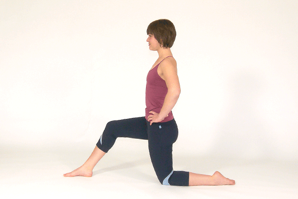 How to do it: Kneel on one knee (use a cushion). Tuck your tailbone under—this is the most important part—and gently shift your weight forward until you feel a deep stretch in the front of your hip.